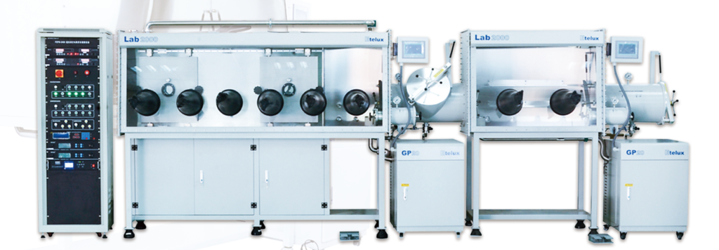 Etelux offers a vacuum deposition system that is a combination of a vacuum deposition system and a vacuum glove box system. Thin film evaporation can be accomplished in the high vacuum evaporation chamber, and sample storage, preparation, and testing of evaporated samples can be performed in the glove box under high purity inert gas atmosphere. The combination of evaporation coating and vacuum glove box realizes the fully enclosed production of evaporation, encapsulation, testing and other processes. The entire film growth and device preparation process is highly integrated in a complete system of controlled environmental atmosphere, which can eliminate the influence of unstable factors in the atmospheric environment during the preparation of large-area circuits. This guarantees the preparation of high-performance, large-area organic optoelectronic devices and circuits.